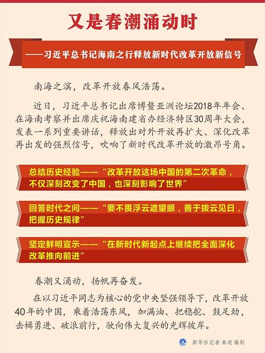 新华社北京4月13日电 题:又是春潮涌动时——习近平总书记海南之行释放新时代改革开放新信号