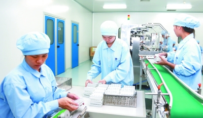 海口高新区药谷科技园区,医药企业开足马力生产。李英挺摄/光明图片