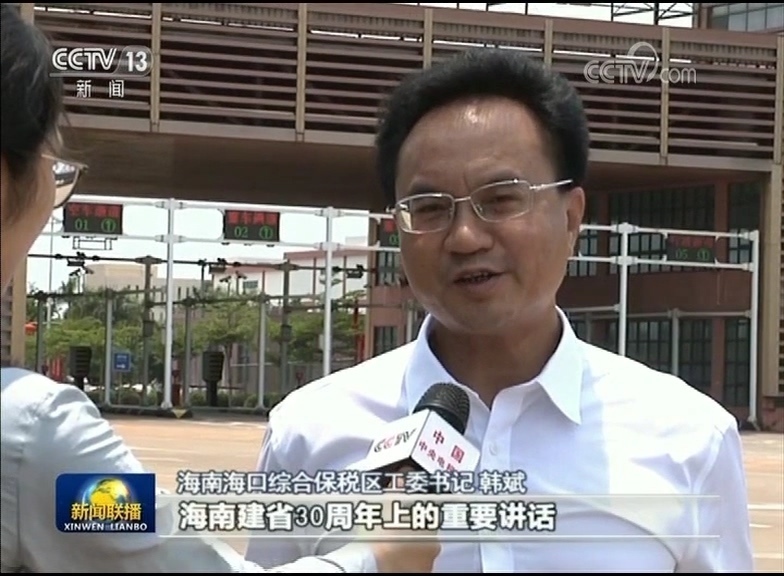 海南海口综合保税区工委书记韩斌:习近平总书记在昨天海南建省30周年上的重要讲话,宣布海南全岛建设自由贸易(实验)区,逐步探索自由贸易港,开放的力度更大、领域更宽、目标更高,我们听完以后倍感振奋。