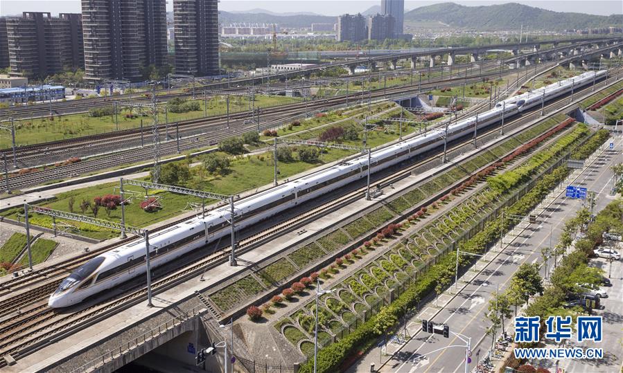 4月9日,一列“复兴号”动车组列车行驶在京沪高铁南京市境内。国家统计局4月17日发布数据,初步核算,一季度国内生产总值198783亿元,按可比价格计算,同比增长6.8%。 新华社发(苏阳 摄)