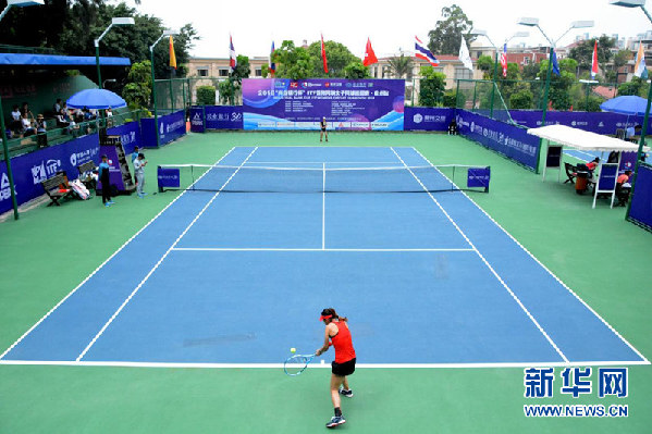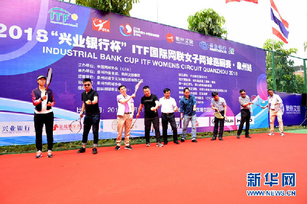 ↑2018国际网联女子网球巡回赛泉州站开拍仪式。新华网发(林楷煜 摄)