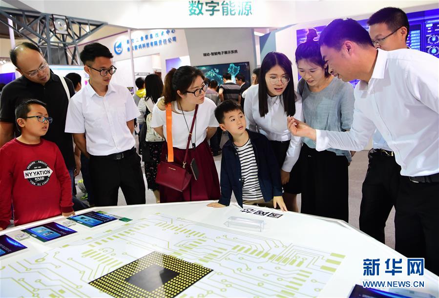 4月22日,观众在首届数字中国建设成果展览会上听取国家电网公司“国网芯”的研发情况介绍。