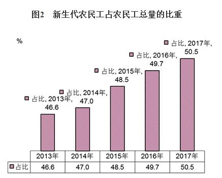 1980年及以后出生的新生代农民工逐渐成为农民工主体,占全国农民工总量的50.5%,比上年提高0.8个百分点;老一代农民工占全国农民工总量的49.5%。