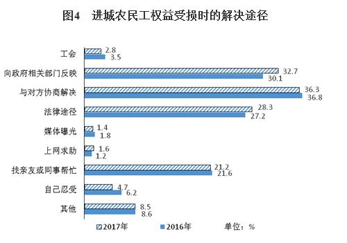 96.7%的农民工家长认为子女在学校未受歧视,比上年提高0.3个百分点;0.4%的农民工家长认为受到歧视,比上年下降0.1个百分点。