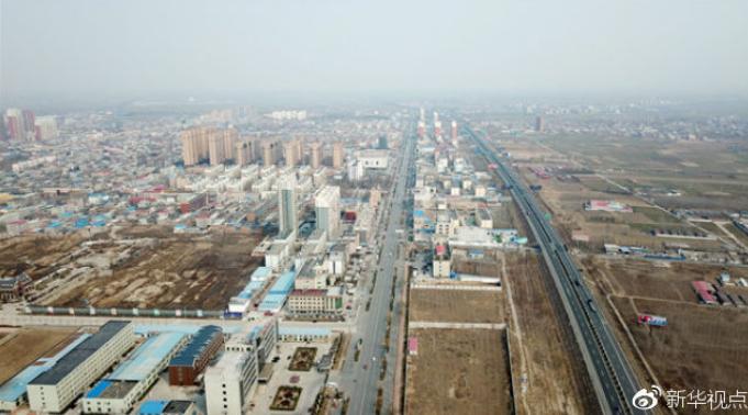 ↑这是河北雄安新区容城县县城(3月21日无人机拍摄)。新华社记者杨世尧 摄