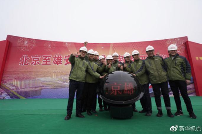 ↑河北雄安新区首个重大交通项目北京至雄安城际铁路正式开工。(2月28日摄)