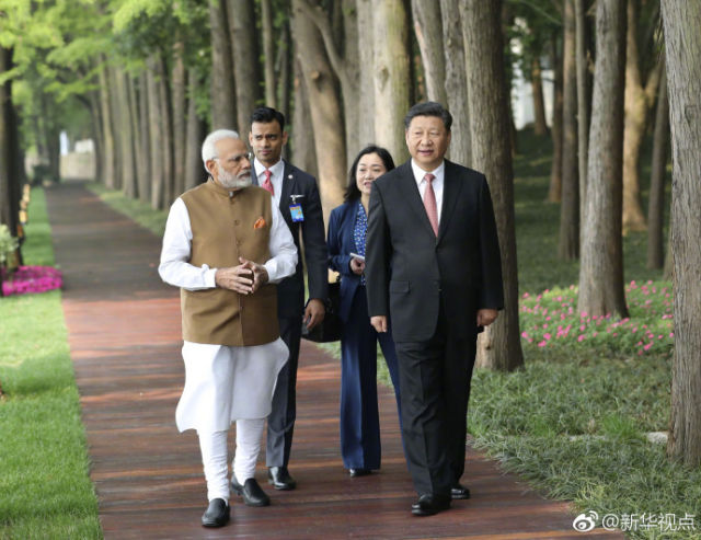 习近平同印度总理莫迪散步交谈