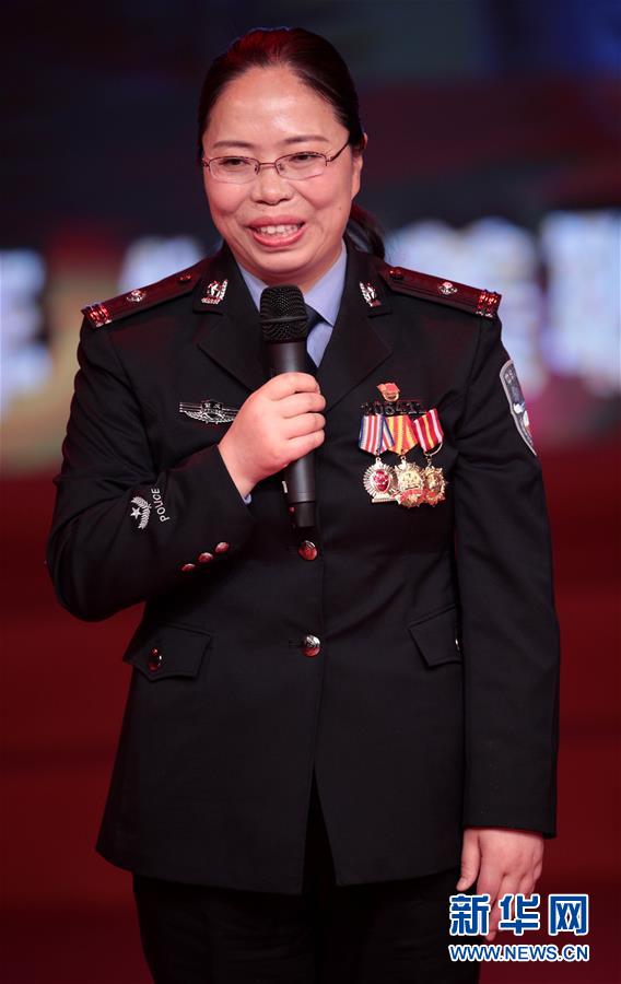 重庆市铜梁区公安局刑事侦查支队三大队大队长杨发英在“最美职工”发布仪式上(4月25日摄)。在“五一”国际劳动节来临之际,中央宣传部、全国总工会在中国文明网向全社会公开发布一批“最美职工”的先进事迹。孙丽、林鸣、徐州、谭文波、王俊堂、李杰、冯世毅、梁庆莲、郭玉全、杨发英等10名个人和贵州乌江水电开发有限责任公司构皮滩发电厂保护班,都是常年工作在基层生产一线,做出突出贡献的技术工人和群体,是辛勤劳动、诚实劳动,刻苦钻研、追求卓越的新时代产业工人的代表。他们用自己的实际行动模范践行了社会主义核心价值观,弘扬了伟大的创造精神、奋斗精神、团结精神和梦想精神,倡导了劳动光荣、创造伟大的社会风尚和精益求精、埋头苦干的敬业风气,展现了中国工人阶级的时代风采,不愧为新时代的“最美职工”。新华社记者才扬 摄