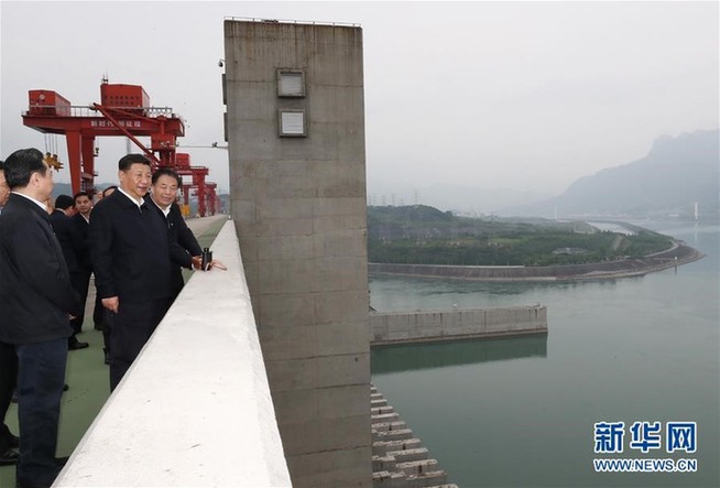 2018年4月24日,习近平深入湖北考察三峡工程和坝区周边生态环境。他举目远眺,气势磅礴的坝体、水波荡漾的江面、郁郁葱葱的江岸尽收眼底。