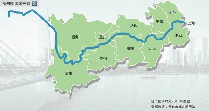 长江经济带东起上海,西至云南,覆盖上海、江苏、浙江、安徽、江西、湖北、湖南、重庆、四川、云南、贵州等11省市,辐射约6亿人口,面积约205万平方公里,GDP占全国总量45%。推动长江经济带发展是国家一项重大区域发展战略,是一盘纵横捭阖、关系到东中西部协调发展的战略新棋局。