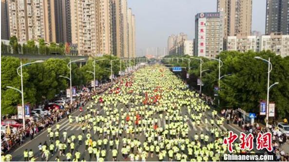 中新网重庆4月30日电 (记者 钟旖)30日,2018重庆铜梁原乡风情马拉松赛在重庆市铜梁区开跑,吸引了来自各地的5000余名选手参与。