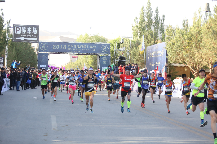 ↑第四届敦煌双遗国际马拉松1日鸣枪起跑。主办方供图
