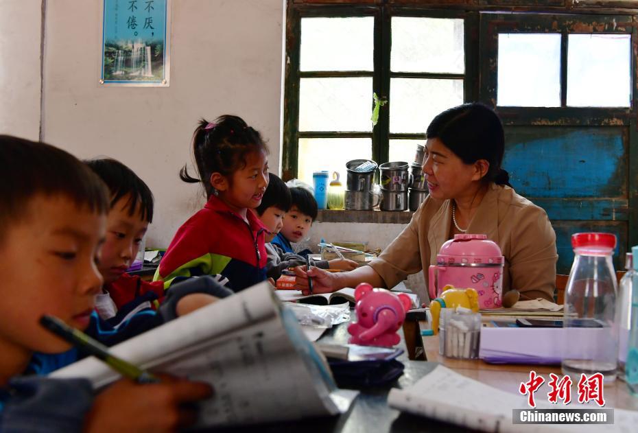 5月4日,河北邢台平乡县东庙小学教室,赵秀格正指导一名学生功课。据了解,东庙小学位于平乡县、广宗县、曲周县和邱县四县交界处,因地处偏远师资匮乏。1986年,高中毕业的赵秀格回到母校当上了代课老师,一干就是32年。“乡亲们把孩子交给我,我就不能辜负乡亲们的信任。我不会让每一个孩子在生活中受到一丁点的委屈,我要让他们的童年留下美好的回忆,这是我的责任也是义务。”这是赵秀格常挂在嘴边的一句话。中新社记者翟羽佳 摄
