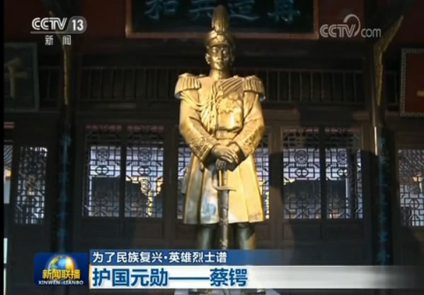 央视网消息(新闻联播):【为了民族复兴·英雄烈士谱】系列报道为您讲述近代伟大的爱国主义者,著名政治家、军事家、民主革命家蔡锷的革命事迹。