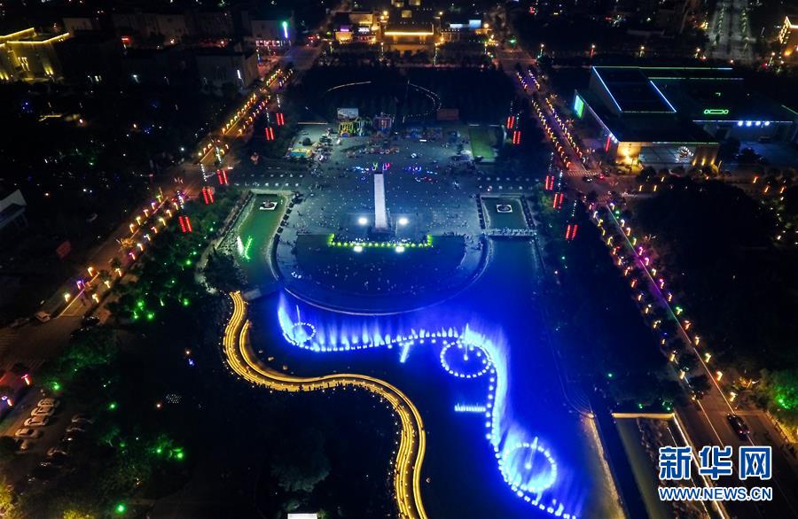 这是四川省北川新县城夜景(5月1日无人机拍摄)。新华社记者 薛玉斌 摄