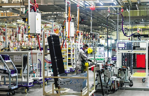 图为一汽—大众长春奥迪Q工厂焊接车间。 新华社记者 许畅摄