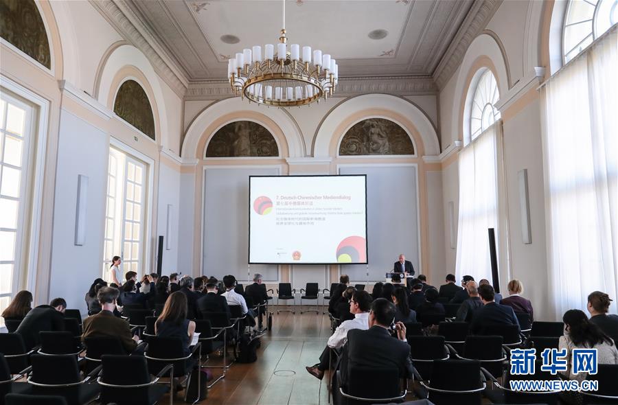 这是5月7日在德国首都柏林拍摄的第七届中德媒体对话现场。由中国国务院新闻办公室和德国外交部共同主办的第七届中德媒体对话7日在德国柏林举行。新华社记者单宇琦摄