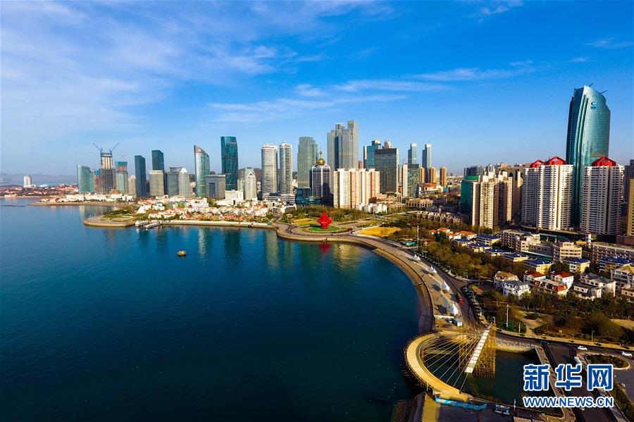 这是青岛五四广场及其周边景色(4月16日无人机拍摄)。新华社记者 郭绪雷 摄