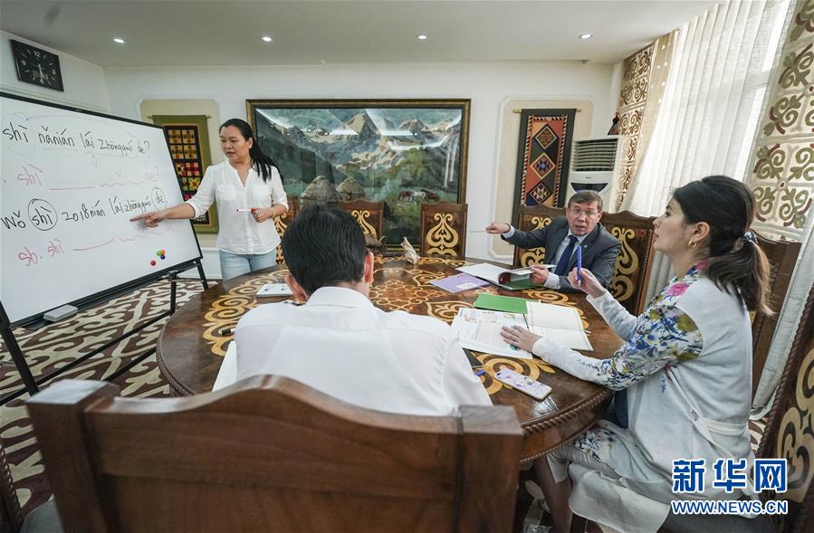 5月8日,上海合作组织秘书处的工作人员在学习中文。新华社记者殷刚 摄