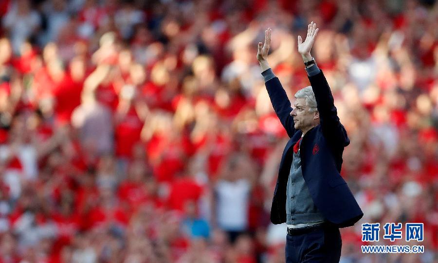 ↑5月6日,阿森纳队主教练温格赛后向球迷挥手致意。新华社照片