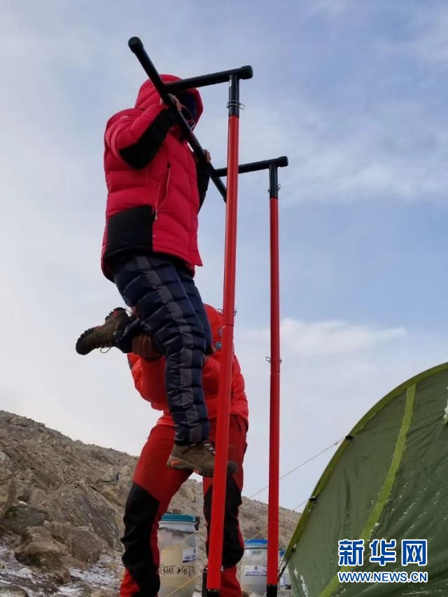 山中生活不无聊,国外登山者自带健身器材,罗静也曾去过了把瘾。不过她承认:“一个都起不来。”