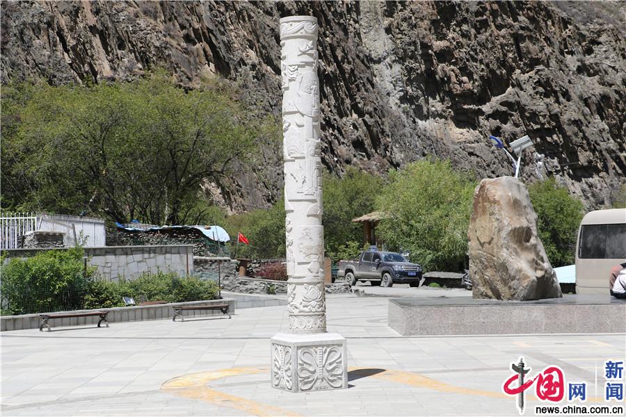 珞巴原乡广场,像这样的柱子一共有8个,代表“八宝”。中国网记者 吴佳潼 摄