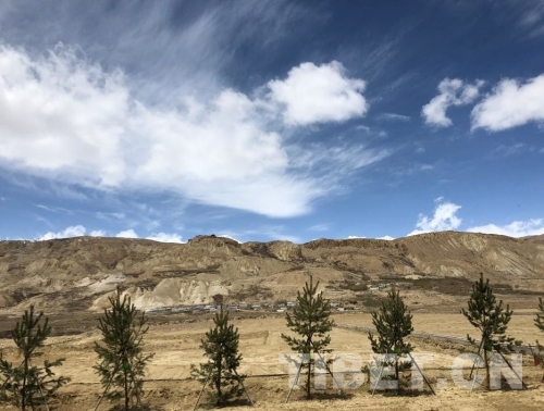 图为海拔3900米以上的阿里普兰县公路两边的绿化建设。摄影:噶哇扎西