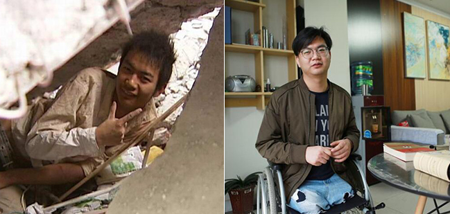 汶川地震中,18岁的薛枭被困废墟80个小时。