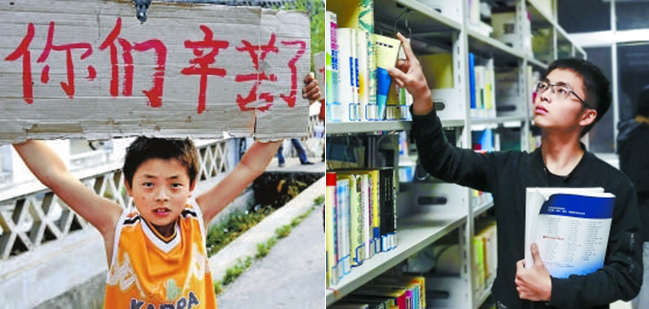 现场有人小声说:“这是从灾区走出来的孩子。”