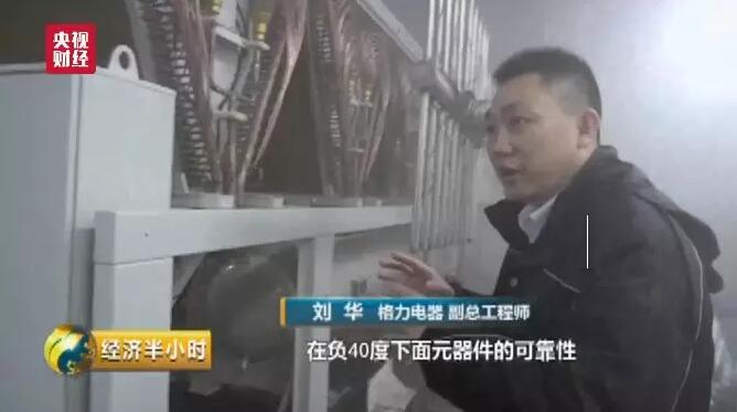 珠海格力电器股份有限公司副总工程师刘华:主要的难点在于,在负40度下面元器件的可靠性,第二个它在负40度,因为我们这里是冷水,里面水的防冻,第三个就是这个冷媒的处理,我就让它不要在里面相应的设备冻坏了,这样的一些可靠性的实验。