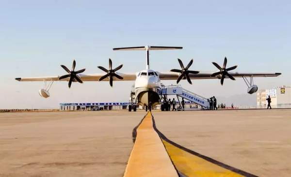 AG600飞机最大起飞重量53.5吨,最大巡航速度500公里/小时,最大航时12小时,最大航程4500公里,具有载重量大、航程远、续航时间长的特点,总体技术水平和性能达到当前国际同类飞机的先进水平。