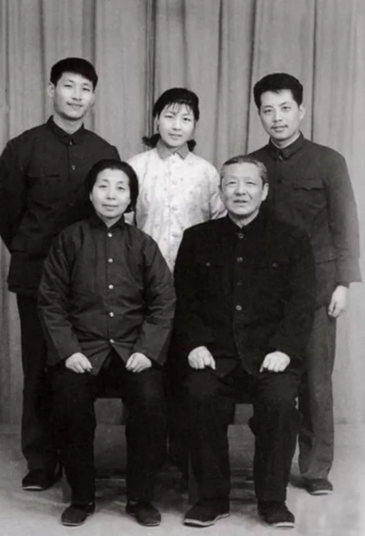 △1975年,习仲勋和齐心与儿女在洛阳红旗照相馆合影。后排左起:儿子习近平、女儿习安安、女婿吴龙。来源:《习仲勋画传》