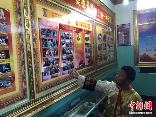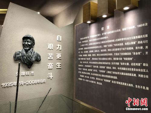 “列麦精神”纪念馆的墙上雕刻着列麦乡党支部原书记仁增旺杰的头像。 中新网 王禹 摄