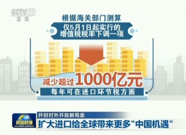 央视网消息(新闻联播):降低关税、增加特色优势产品进口、搭建国际贸易平台,我国主动扩大进口的一系列举措正在加快落地,利好国内消费者的同时,也将给世界带来更多的“中国机遇”。