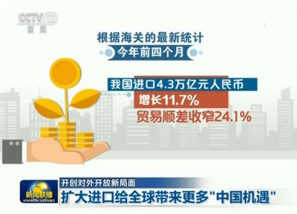 根据海关的最新统计,今年前四个月,我国进口4.3万亿元人民币,增长11.7%;贸易顺差收窄24.1%。