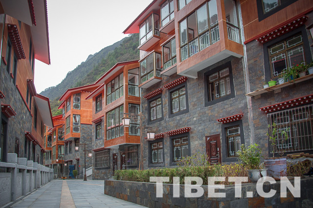 说起现在的房子,古如很是满足:“之前住在这里,90平米的房子是木石结构的,很不安全,屋顶的铁皮因为常年下雨很快就会锈掉,一到下雨天就漏雨。路也不好走,由于勒布沟里雨水较多,整天一身泥。居住环境没有什么舒适性可言。现在住到这个小镇里面,房子很新,也很安全。路也修成了水泥路,通了电,也通了网络。现在响应政府号召,我家里也开了农家乐,收入还算不错。农家乐里一共有6间房,每个月能有3000元的收入。现在能有这么好的生活,真的感谢党和国家啊。”