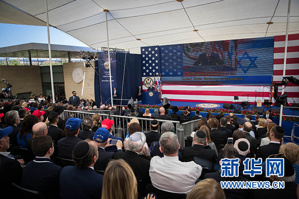 数百名官员参加了当天的美国新使馆开馆仪式。美国副国务卿沙利文率领美方代表团出席仪式,其中包括美国总统特朗普的女儿伊万卡和她的丈夫库什纳,以及美财政部长姆努钦。