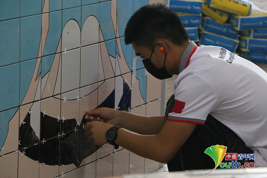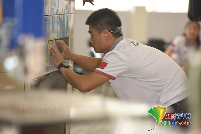 然而在瓷砖贴面这项技艺里,崔兆举坦言,自己并不是一个有天赋的人,学院集训队选拔时差点落选,后来多次考核成绩不理想,每一次的训练都要花比别人更多的时间才能取得一点点的进步。