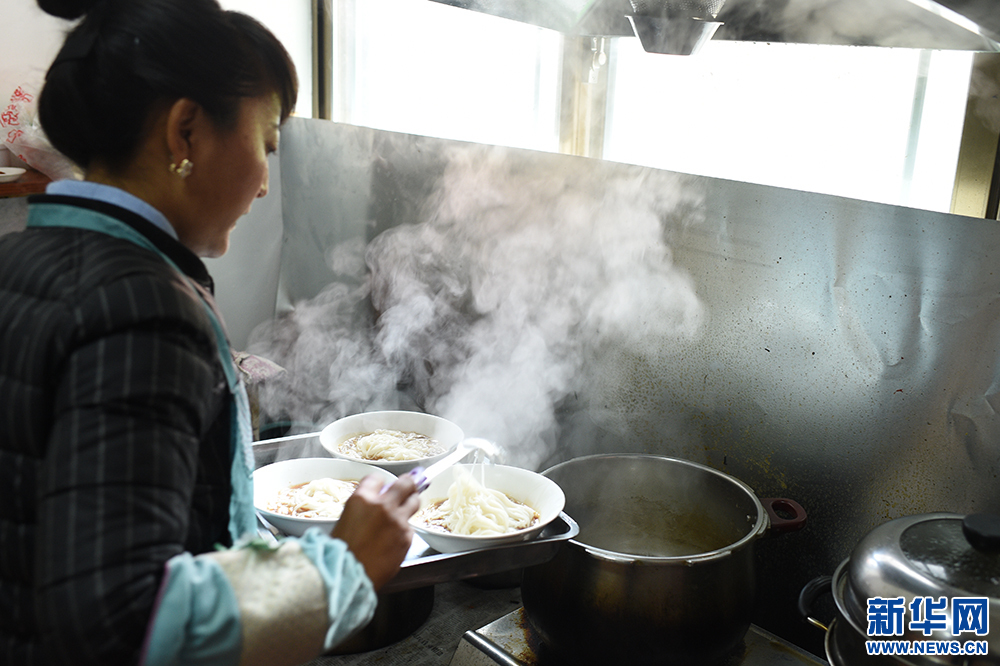 正在为客人煮面的尼玛拉姆(5月12日 摄)。新华网记者 陈琳摄