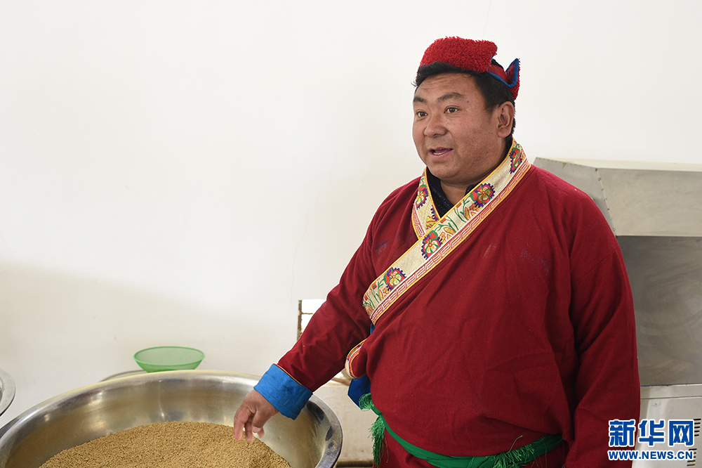 勒布沟特色产品农牧民专业合作社负责人群增次仁向记者介绍情况(5月13日 摄)。新华网记者 陈琳 摄