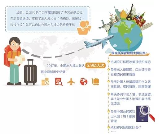 近年来,我国出入境活动日趋活跃,出入境管理在便利国际交往和人员往来、促进对外交流等方面发挥着越来越重要的作用。按照《深化党和国家机构改革方案》,原公安部的出入境管理、边防检查职责经过整合后,组建了国家移民管理局,加挂中华人民共和国出入境管理局牌子,由公安部管理。