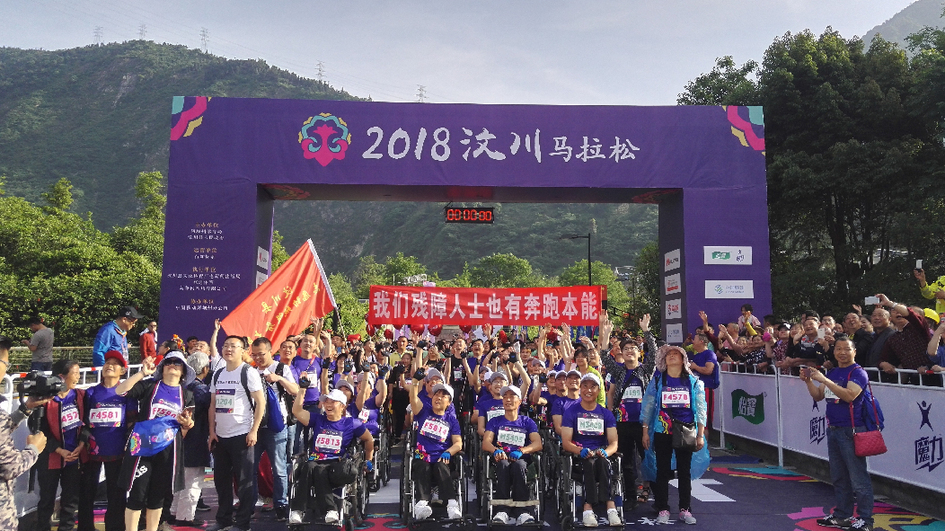 新华网体育成都5月15日电 13日上午9点,2018汶川马拉松赛在汶川县映秀镇爱立方鸣枪起跑,来自中国、美国、英国、加拿大等14个国家和地区的近6000名运动员参赛。