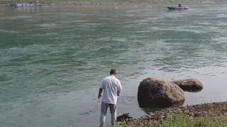 “现在看上去金沙江要比岷江清澈,但早几年可不是这样的。”在长江公园亲水步道遛狗的市民廖老伯说。廖老伯的遛狗方法有些与众不同,他走到江边,将一个小白罐抛入水中,随后指挥自家狗狗去把小罐子捡回来。“前几年,金沙江上游建了大坝,拦住了泥沙,使得金沙江的水清澈了不少。如果江水很脏,我也不舍得让狗下水。”说话间,小狗已经训练有素地将罐子带回了岸边。