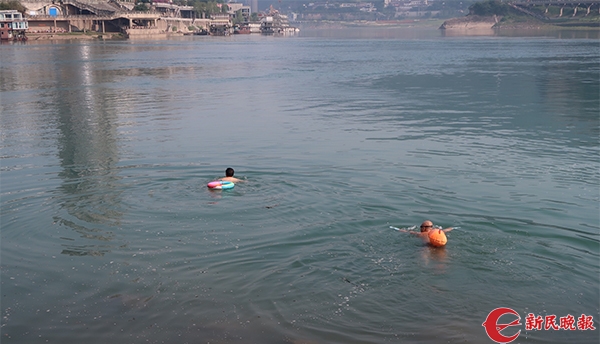 江水是否干净,爱在金沙江游泳的周老伯也很有发言权。他说,自己在这里已经游了几十年泳了,只要天气合适,就算是冬天也会来。但是早些年游完泳头发里还会有泥沙,得用水冲老半天才能冲干净,现在就不用操心这个问题了。周老伯从岸边捧起一汪水,“你看,现在水里已经看不太到泥沙了。”