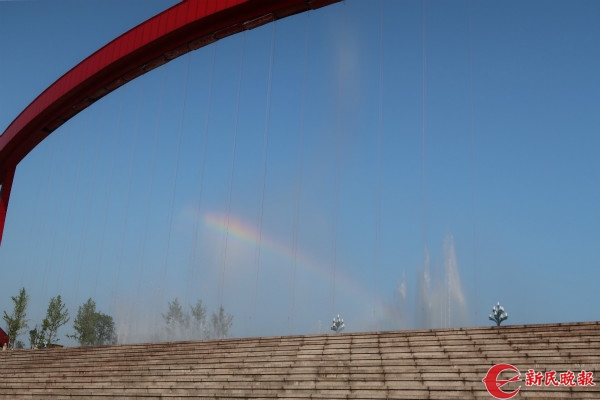图说:目前全国最大的室外天幕,可结合水、声、光、电手段营造出美轮美奂的水幕表演。黄佳琪 摄