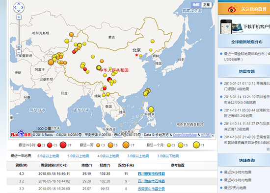 四川雅安市石棉县发生4.3级地震 震源深度11千米