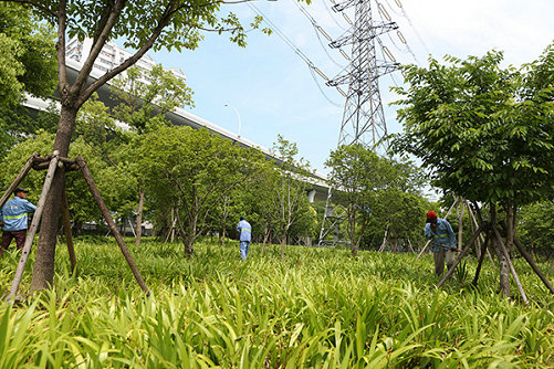 高压线下的绿化带仍在建设中。澎湃新闻记者 朱伟辉 图