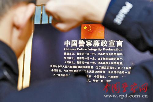 2017年11月13日,浙江省海盐县公安局百步派出所组织新民警进行廉政宣誓。