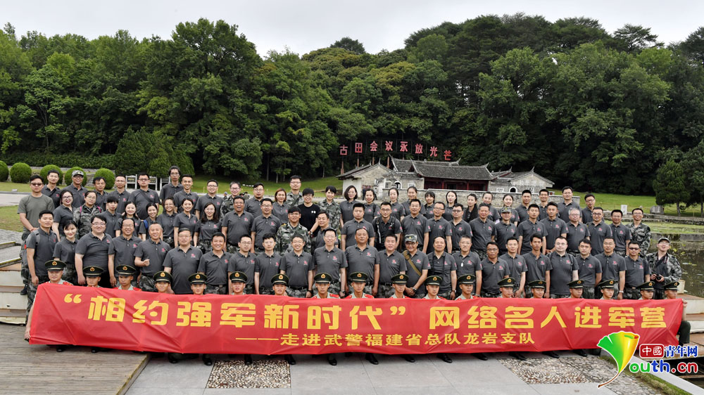 “相约强军新时代”网络名人进军营活动走进武警福建总队龙岩支队,并瞻仰古田会议旧址。李涛 摄
