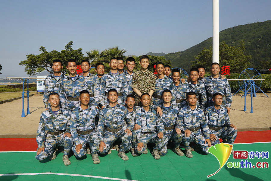 张译在训练场与海军官兵合影留念。 卢冠琼 摄